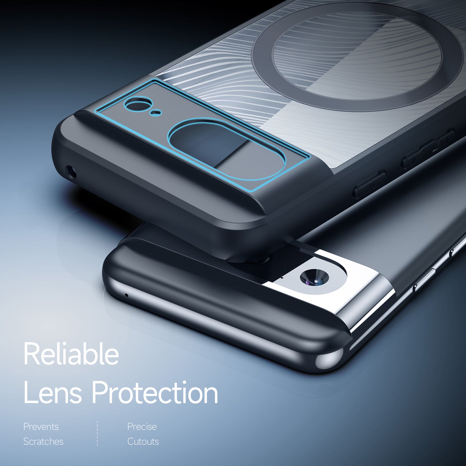 The DuxDucis MagSafe Cover boasts a transparent hard PC backplane that beautifully preserves the natural look of your Google device. The incorporation of soft TPU edges ensures a snug fit and effortless application while providing comprehensive protection against daily wear and tear. The case's design is not only about aesthetics; the frosted finish and flowing lines elevate the tactile experience, improving grip to prevent slips and drops.