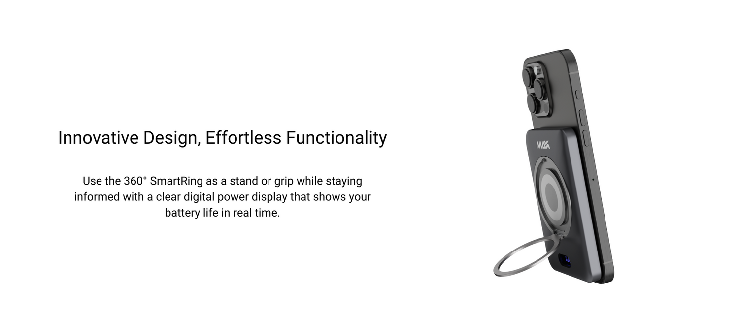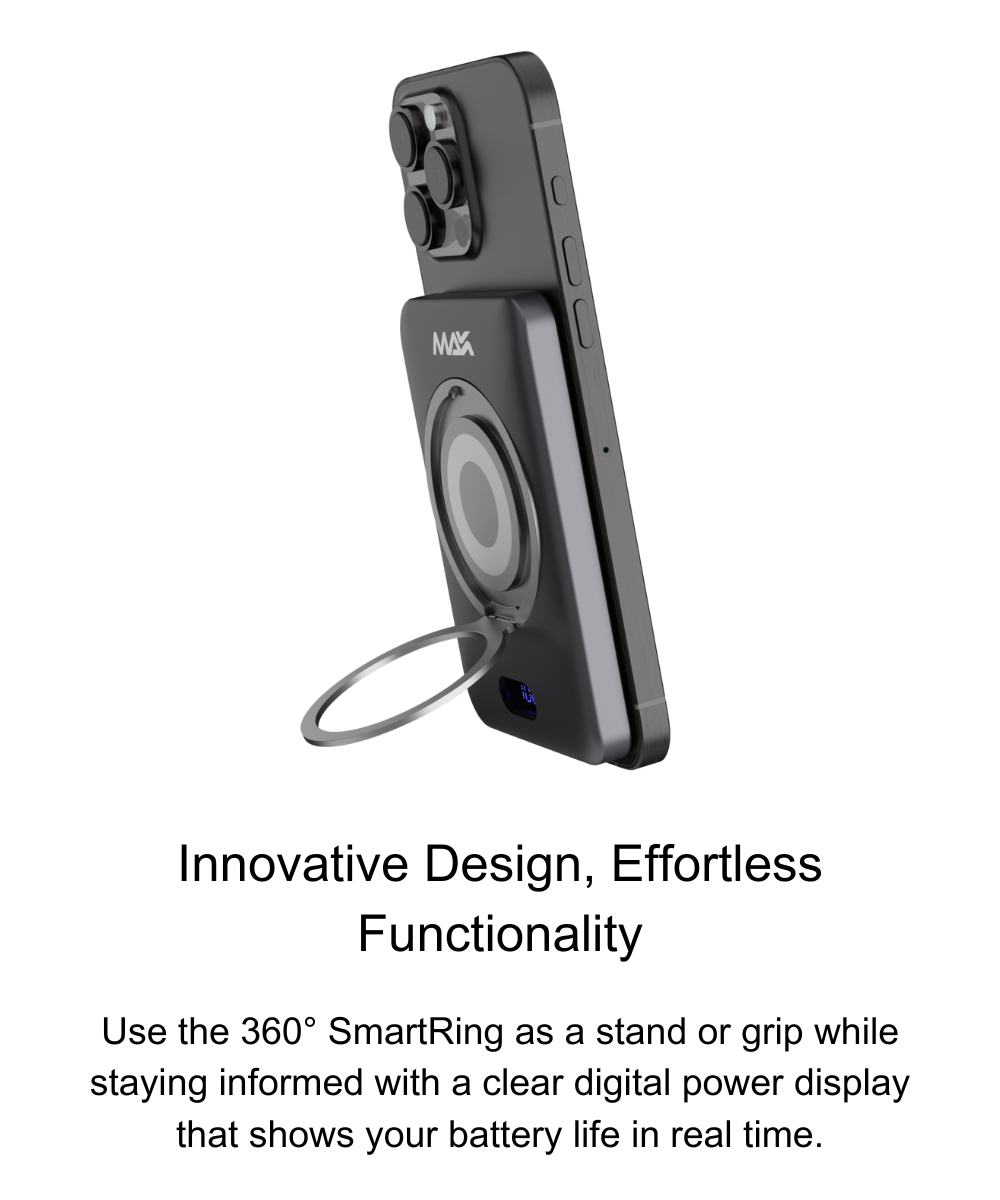 The built-in SmartRing rotates 360° and folds open to 120°, transforming into a versatile stand or grip. Whether you're streaming content, taking calls, or working on the go, the iCharger Max Ultra adapts seamlessly to your needs.