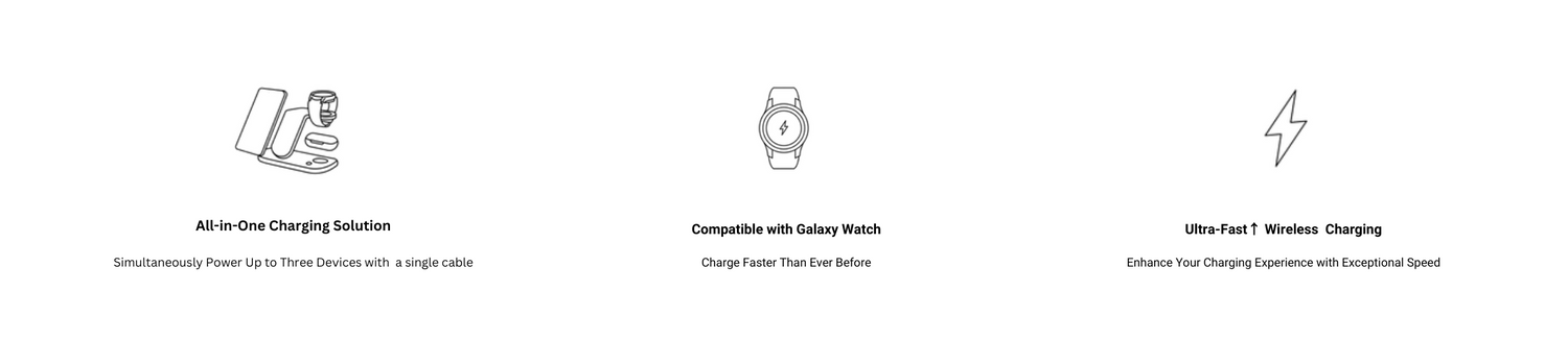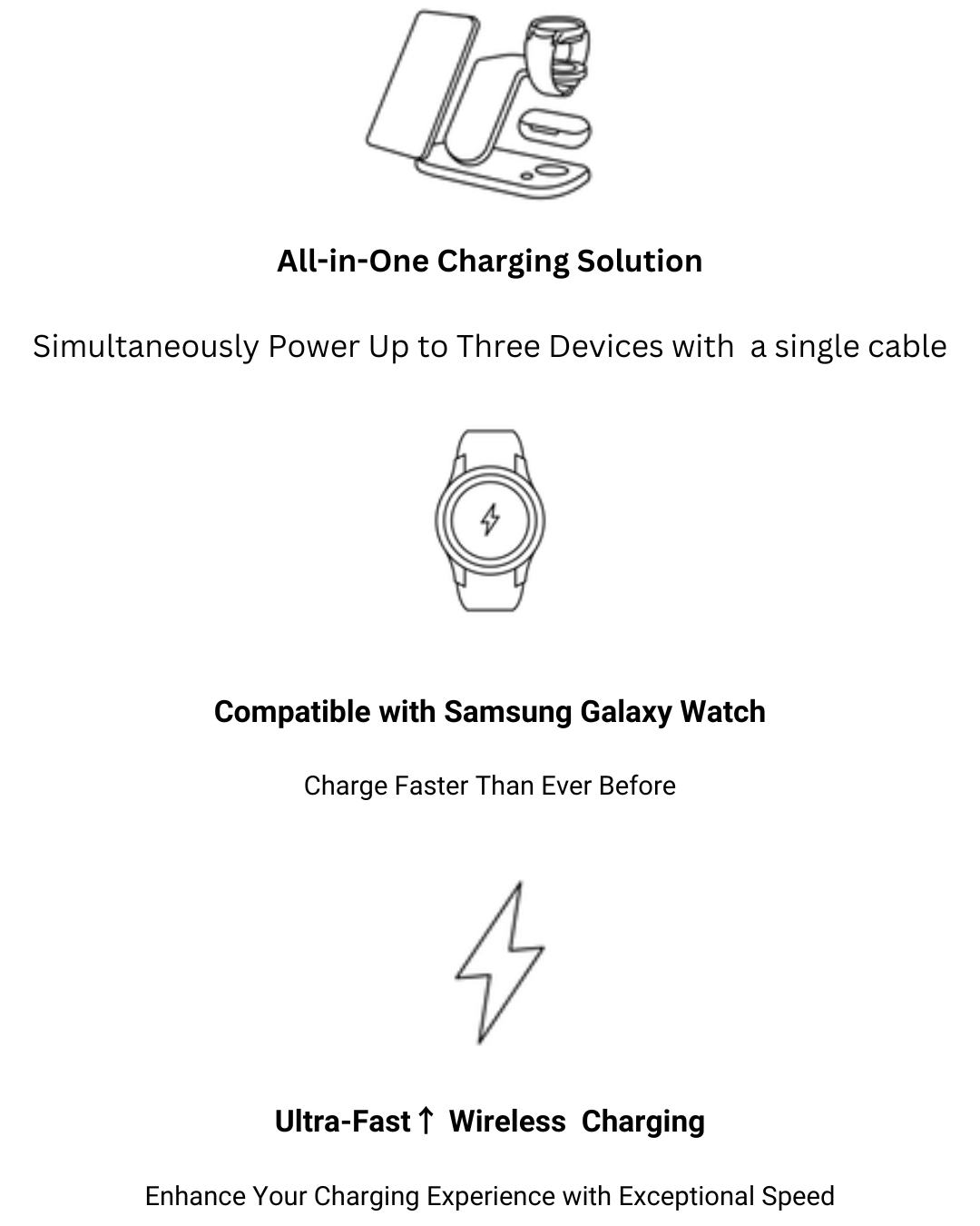 Triple the Power, Triple the Efficiency: Embrace the simplicity of powering your phone, Buds, and Watch simultaneously with a single innovative cable. Say goodbye to clutter and step into a world of streamlined charging.