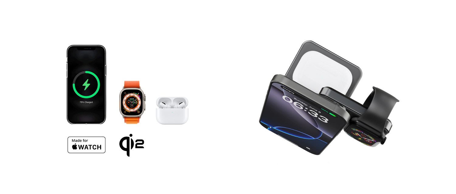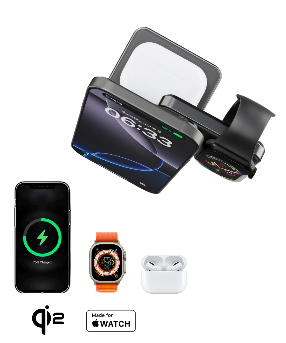Efficiently Power Your iPhone, Apple Watch, and Qi-Enabled Earbuds Anytime, Anywhere.